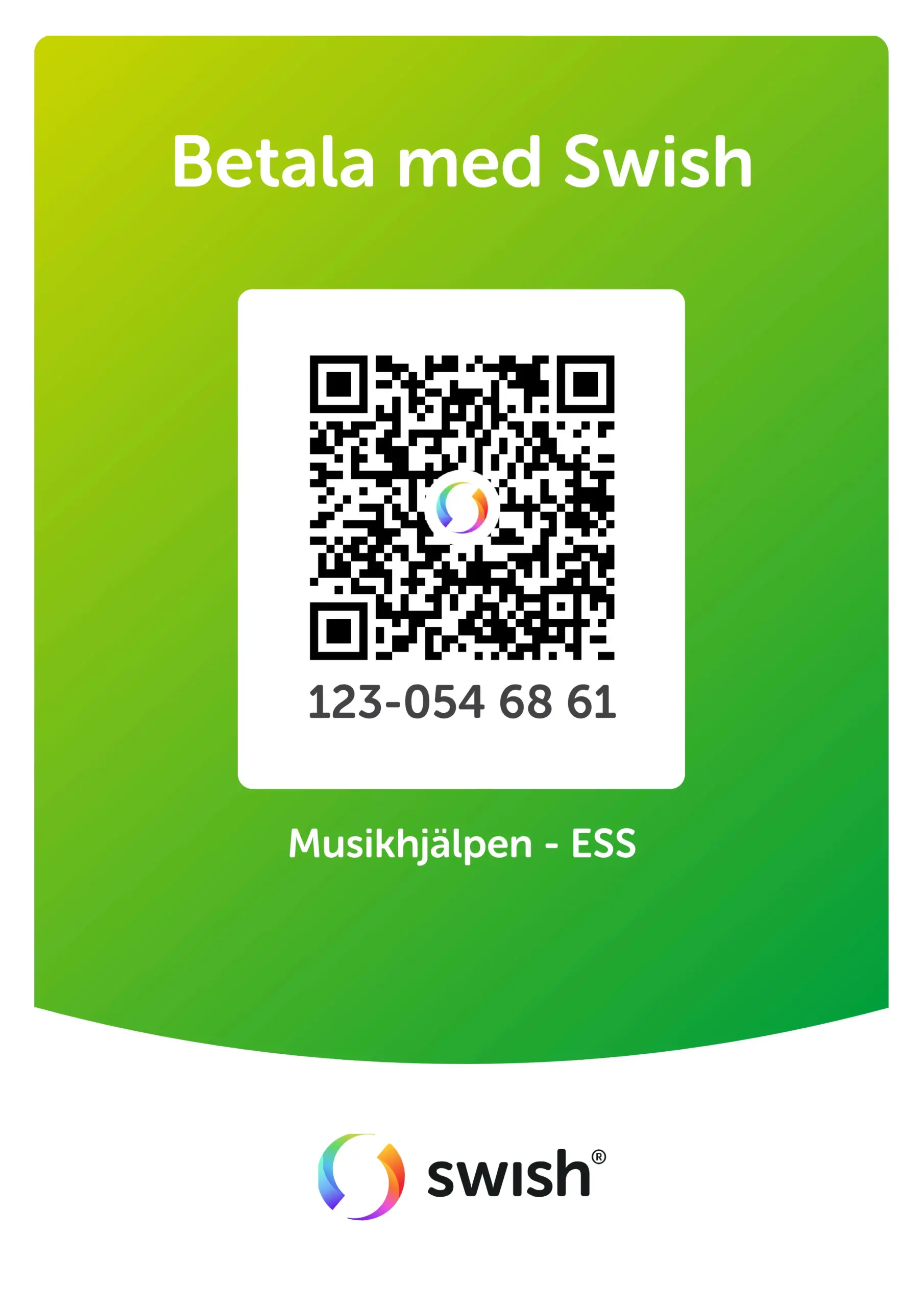 Swisha: 123 054 68 61